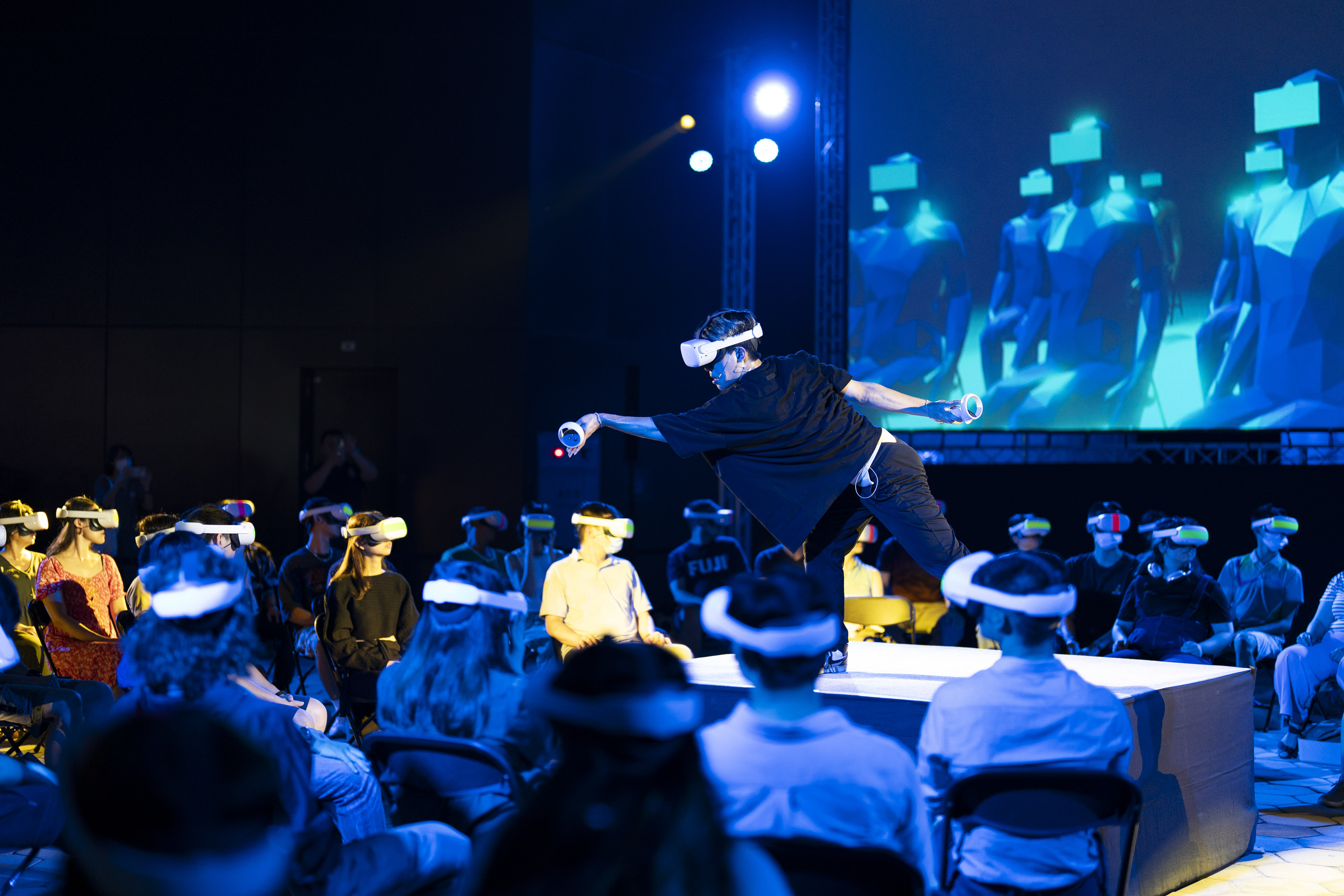 百年公會堂3樓氣勢恢宏的歐式大廳裡,將帶來狠劇場遠征威尼斯、日內瓦影展VR互動式展演的《放開你的頭腦》。在展演中,VR不僅是媒介,更是創作的核心,現場40個觀眾戴上VR設備後,將從被動的觀看者轉變為主動的參與者,甚至成為表演的一部分。打破傳統的藝術欣賞模式,讓每位參與者在虛擬空間中,共同創造獨一無二的表演體驗。